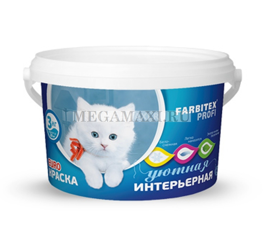 Интернет-магазин Megamaxi → Каталог → Все товары → Товары для ремонта → Краски акриловые, водные → Краски для внутренних работ → Краска акриловая интерьерная FARBITEX PROFI 3 кг.