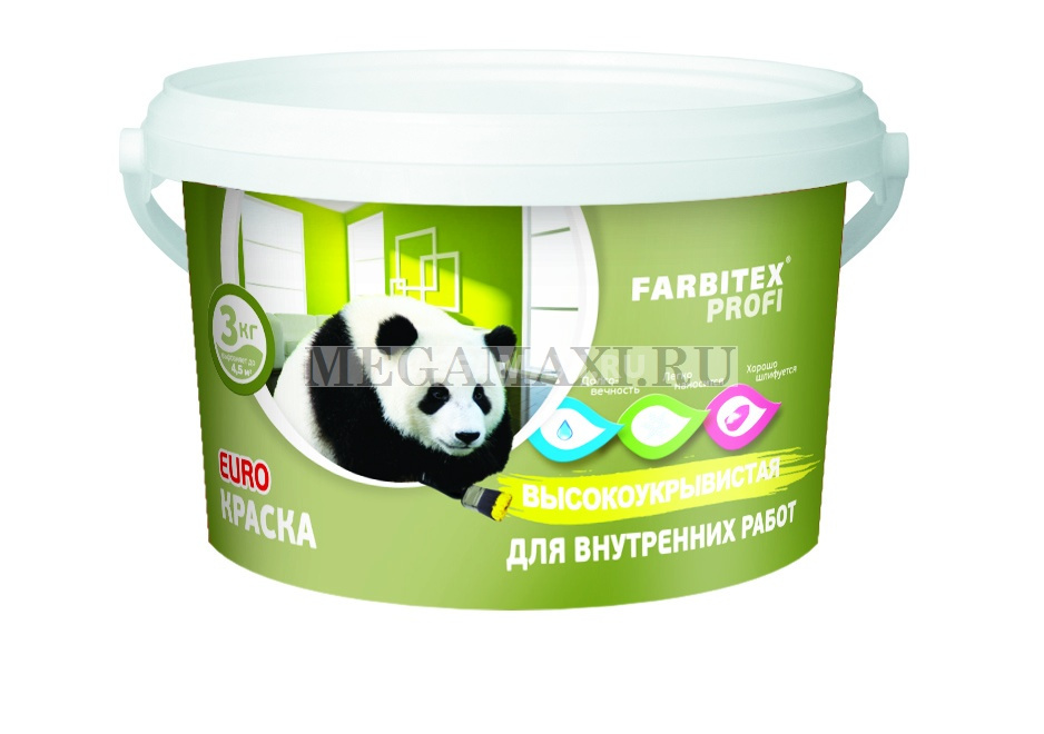 Интернет-магазин Megamaxi → Каталог → Все товары → Товары для ремонта → Краски акриловые, водные → Краски для внутренних работ → Краска акриловая интерьерная высокоукрывистая (3 кг) FARBITEX ПРОФИ