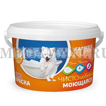 Интернет-магазин Megamaxi → Каталог → Все товары → Товары для ремонта → Краски акриловые, водные → Краски для внутренних работ → Краска акриловая моющаяся Farbitex PROFI 7 кг.