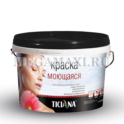 Интернет-магазин Megamaxi → Каталог → Все товары → Товары для ремонта → Краски акриловые, водные → Краски для внутренних работ → Краска водно-дисперсионная база "А" моющаяся (2.5 л) TICIANA