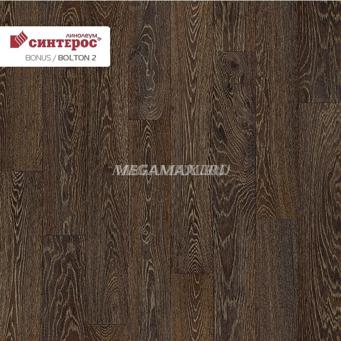 Покрытие коллекции Бонус - это превосходное и высококачественное напольное покрытие. Отличное сочетание технических свойств и цены товара. Великолепный выбор для укладки в жилых помещениях и в офисах со средней проходимостью. Модель Болтон 2, благодаря томному шоколадному тону в дизайне и великолепной имитации структуры дерева, выглядит достаточно изысканно и благородно. Данное покрытие придаст утонченности вашему интерьеру и позволит полу выглядеть просто шикарно. А невысокая стоимость полотна станет хорошим бонусом при покупке линолеума данной коллекции.
