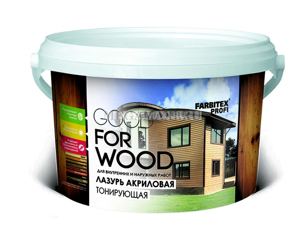 Интернет-магазин Megamaxi → Каталог → Все товары → Товары для ремонта → Лаки, пропитки, морилки → Защитный состав → Состав акриловый защитно-красящий Лазурь палисандр (0.9 л) FARBITEX ПРОФИ GOOD FOR WOOD