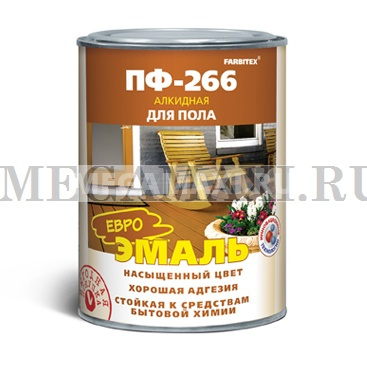 Интернет-магазин Megamaxi → Каталог → Все товары → Товары для ремонта → Краски алкидные, эмали → Краска для пола → Эмаль алкидная ПФ-266 красно-коричневый (0.9 кг) FARBITEX